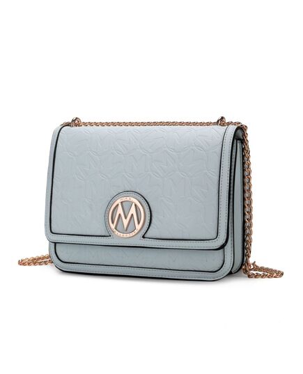 One bag, many occasions - our Amiyah shoulder bag defines everyday sophistication. Designed in a fold-over silhouette with gold-tone hardware and with our M emblem embossed on it, this bag will hold all your daily essentials. Crafted from smooth vegan leather, with a magnetic snap closure, open it to reveal a fully lined two-compartments interior with a slip pocket and a wall zippered pocket. Its polished chain-trimmed strap is versatile enough to be worn crossbody on over your shoulder. Reach for it to top off any look with polish. POCKETS - Interior features a wall zip pocket, one slip pocket. Measurements - 10” W x 7” H x 3.5” D Adjustable Shoulder strap - Extends to 24”