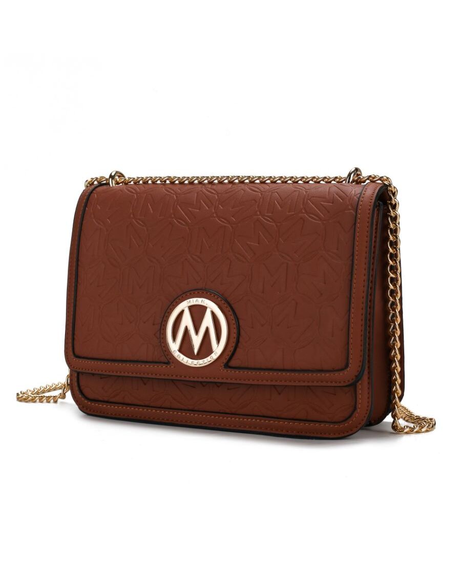 One bag, many occasions - our Amiyah shoulder bag defines everyday sophistication. Designed in a fold-over silhouette with gold-tone hardware and with our M emblem embossed on it, this bag will hold all your daily essentials. Crafted from smooth vegan leather, with a magnetic snap closure, open it to reveal a fully lined two-compartments interior with a slip pocket and a wall zippered pocket. Its polished chain-trimmed strap is versatile enough to be worn crossbody on over your shoulder. Reach for it to top off any look with polish. POCKETS - Interior features a wall zip pocket, one slip pocket. Measurements - 10” W x 7” H x 3.5” D Adjustable Shoulder strap - Extends to 24”