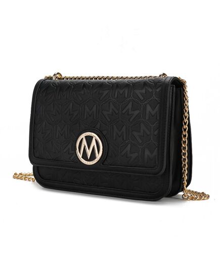 One bag, many occasions - our Amiyah shoulder bag defines everyday sophistication. Designed in a fold-over silhouette with gold-tone hardware and with our M emblem embossed on it, this bag will hold all your daily essentials. Crafted from smooth vegan leather, with a magnetic snap closure, open it to reveal a fully lined two-compartments interior with a slip pocket and a wall zippered pocket. Its polished chain-trimmed strap is versatile enough to be worn crossbody on over your shoulder. Reach for it to top off any look with polish. POCKETS - Interior features a wall zip pocket, one slip pocket. Measurements - 10” W x 7” H x 3.5” D Adjustable Shoulder strap - Extends to 24”