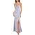Color/Pattern - Light Purple Approximately 64In From Shoulder To Hem Model Is 5'11 And Is Wearing A Size 4. Measurements May Vary Slightly By Size. Design Details - Satin Design, Draped Neckline, Center Front Slit Center Back Zipper With Hook-And-Eye Closure Lace-Up Back Closure Shell - 96% Polyester, 4% Spandex Lining - 97% Polyester, 3% Spandex Hand Wash Imported