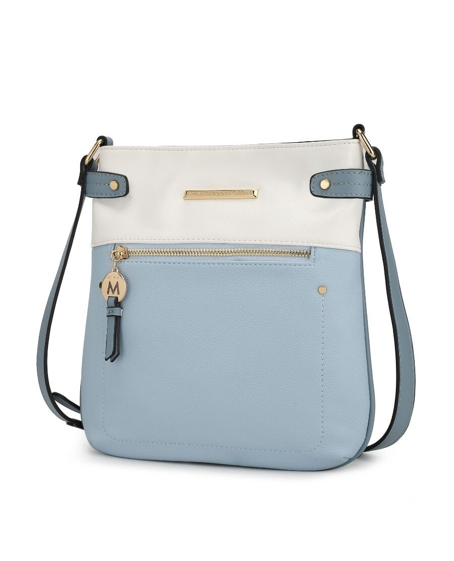 Design with luxurious gold tone embellishments, The Camilla crossbody is a compact bag and a versatile way to go hands-free with room for a phone, cards, cash, keys, and other essentials. The Camilla Crossbody is a one-compartment style, and has a top zipper closure, making it easy to put in belonging and go. The Camilla crossbody has an adjustable strap with a gold tone buckle. It is in a smooth pebble texture in the bottom, with smooth vegan leather in the top and straps in a three-tone matching. The Camilla Crossbody has hand pressed studs and decorative stitches in the front. It has also our signature Mia K. Collection metal plate emblem in the front for decoration.POCKETS - Interior features spacious compartment with two slip in pockets and a wall zipper pocket. Exterior features a front and back deep zipper pocket. Front zipper with a Decorative Mia K round emblem zipper puller.Measurements - 10 in L x 10 in H x 1.5 in WAdjustable shoulder strap extends to 48 in