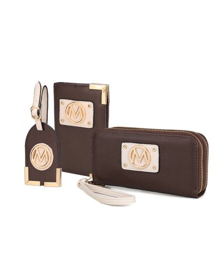 Looking for a beautiful travel gift set for someone who loves travelling? Our Darla Travel Set is the perfect gift designed to add a touch of class to your travel accessories. The set comes with a passport holder, a luggage hang tag and a wallet with plenty of space. Crafted from color block pebbled high-quality vegan leather, and designed with gold-tone embellishments, this set combines style with organization.Wallet Measurements - 7.5” W x 3.5” H x 1.5” DIt features two zipper compartments, and stores up to 8 credit cards, cash and folded boarding pass.Passport Holder Measurements - 4.25” W x 6.25” HLuggage Hang Tag - 4” W x 2.5” H