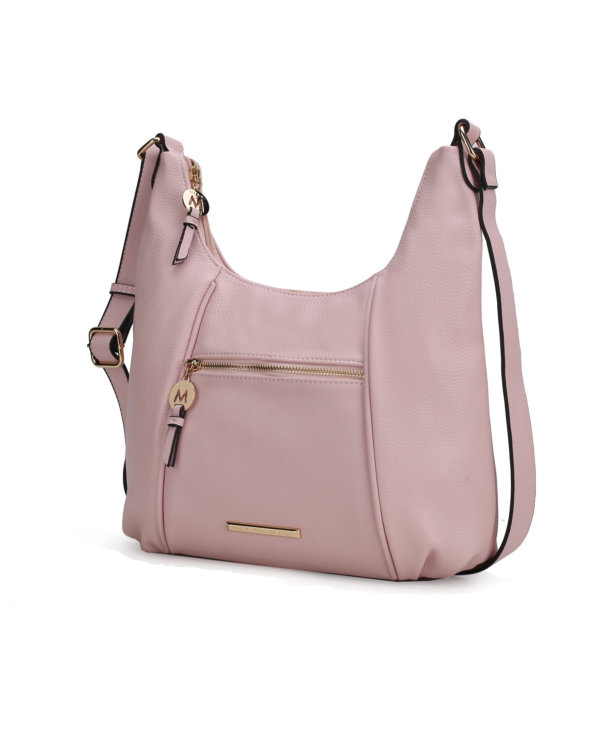 Our Lavinia Shoulder Bag is a slightly slouchy silhouette style you will carry time and again. Crafted from high-quality vegan leather, you will love this style. Designed with gold-tone embellishments, the Lavinia Shoulder Bag unzips to reveal a fully lined interior with slip pockets and a wall zippered pocket. The exterior features one front zip pocket to store your essentials and a convenient back zip pocket. The adjustable strap ensures effortless crossbody or shoulder wear. The bag has our emblem plate on it. The Lavinia Shoulder Bag has flat base with feet for stability. POCKETS - Interior features a wall zip pocket, two slip pockets. Exterior features one zippered back pocket and one zip front pocket. Measurements - 12.2” w x 12.5”H x 6” D Adjustable strap - Extends to 25”