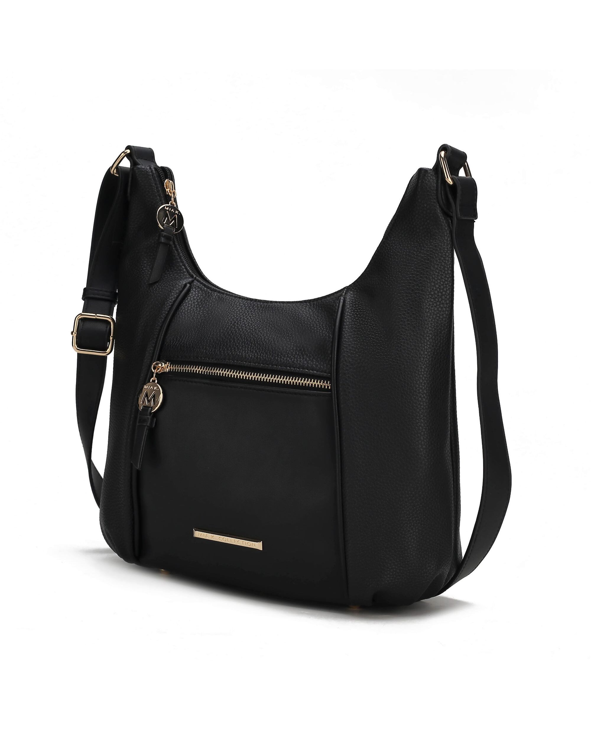 Our Lavinia Shoulder Bag is a slightly slouchy silhouette style you will carry time and again. Crafted from high-quality vegan leather, you will love this style. Designed with gold-tone embellishments, the Lavinia Shoulder Bag unzips to reveal a fully lined interior with slip pockets and a wall zippered pocket. The exterior features one front zip pocket to store your essentials and a convenient back zip pocket. The adjustable strap ensures effortless crossbody or shoulder wear. The bag has our emblem plate on it. The Lavinia Shoulder Bag has flat base with feet for stability. POCKETS - Interior features a wall zip pocket, two slip pockets. Exterior features one zippered back pocket and one zip front pocket. Measurements - 12.2” w x 12.5”H x 6” D Adjustable strap - Extends to 25”