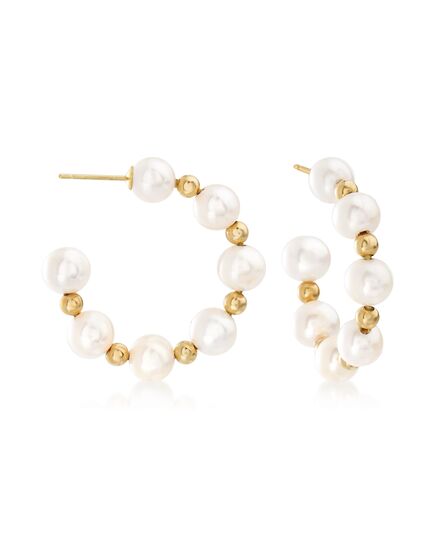 Ross-Simons 6-7mm Cultured Pearl Hoop Earrings in 14kt Yellow Gold