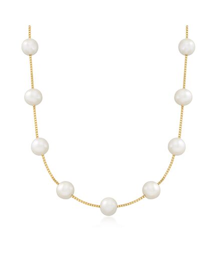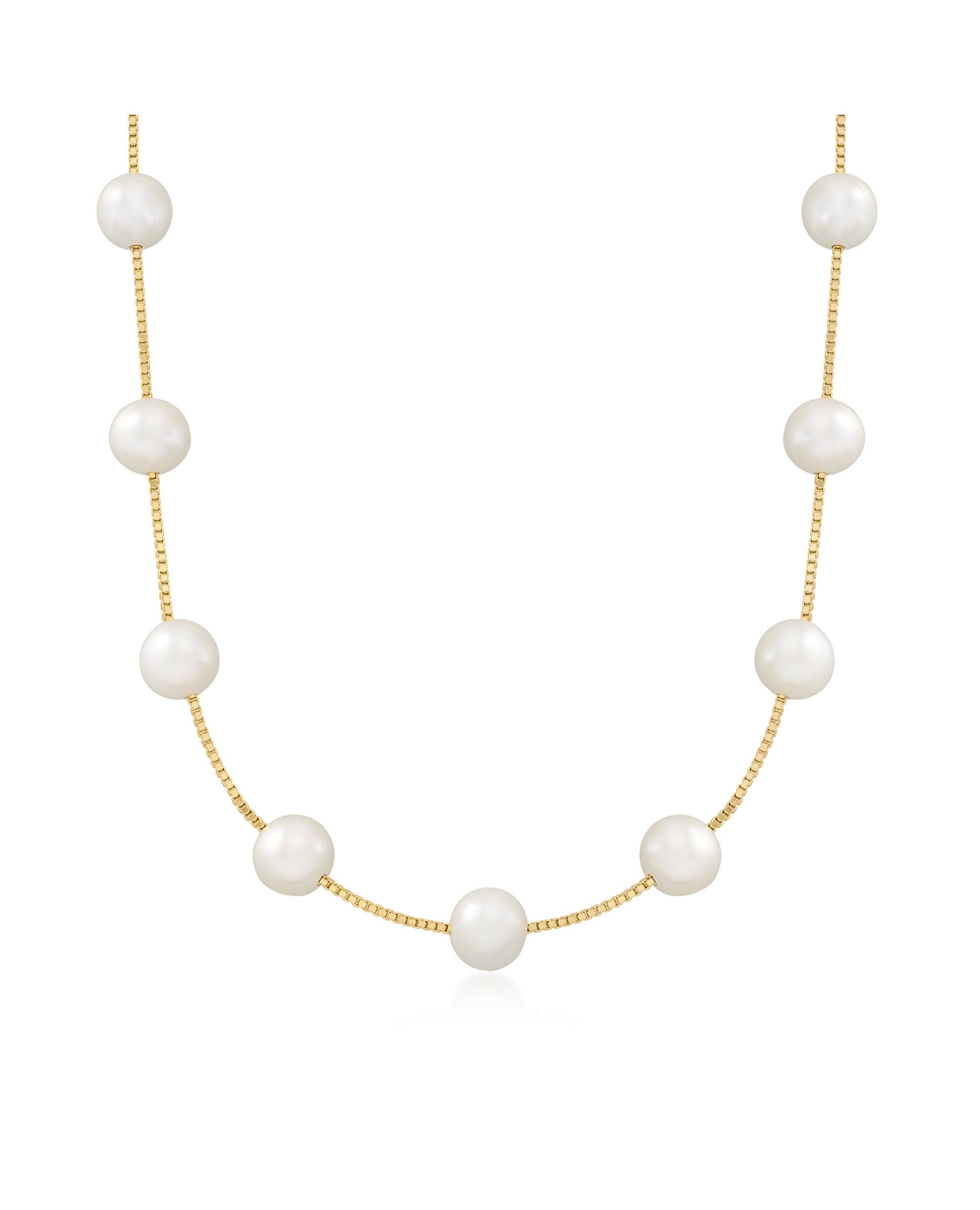 Ross-Simons 8-8.5mm Cultured Pearl Station Necklace in 18kt Gold Over Sterling