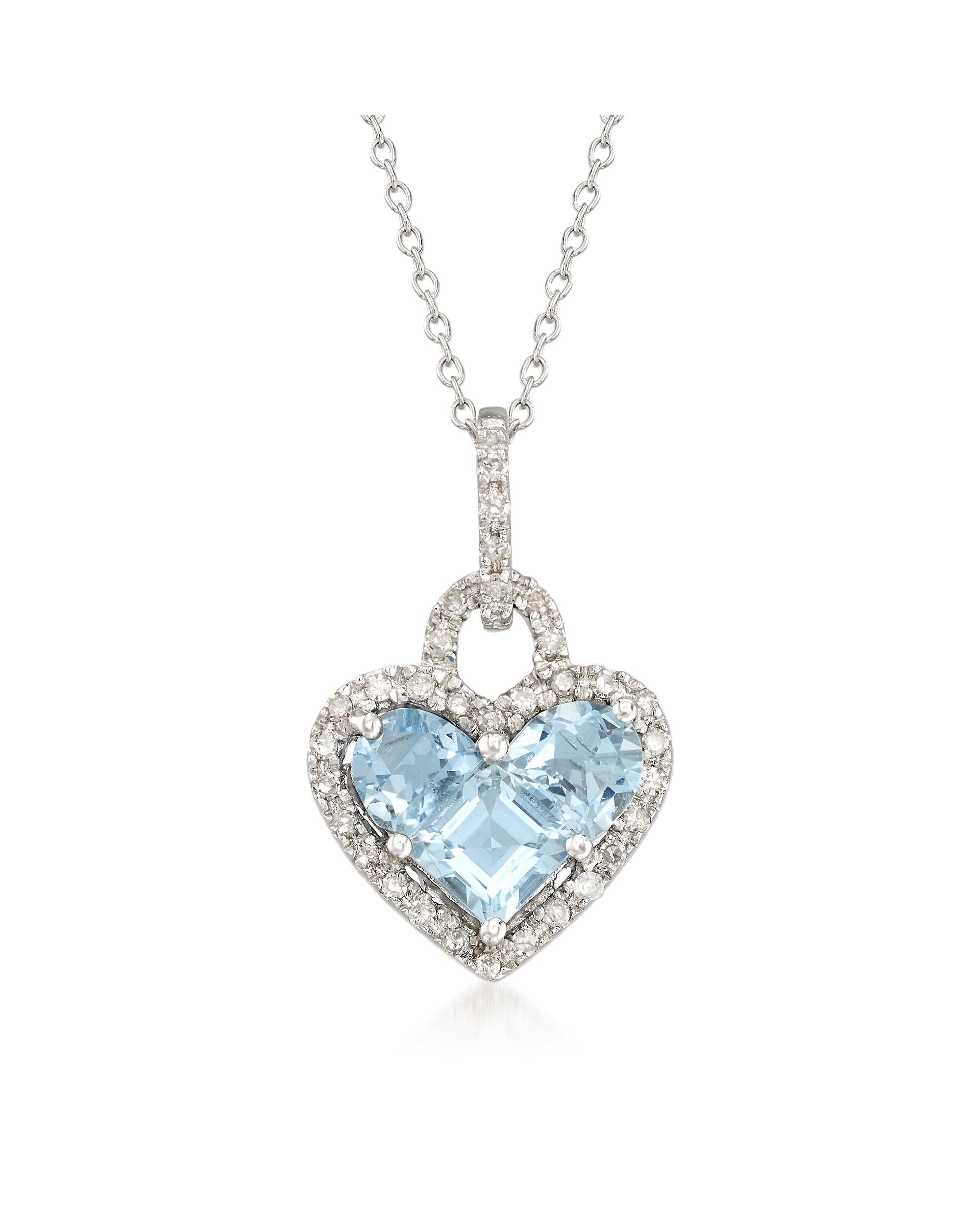 Ross-Simons Aquamarine and . Diamond Heart Pendant Necklace in Sterling Silver