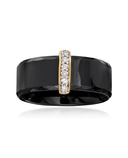 Ross-Simons Black Ceramic Ring With Diamond Bar in 14kt Yellow Gold