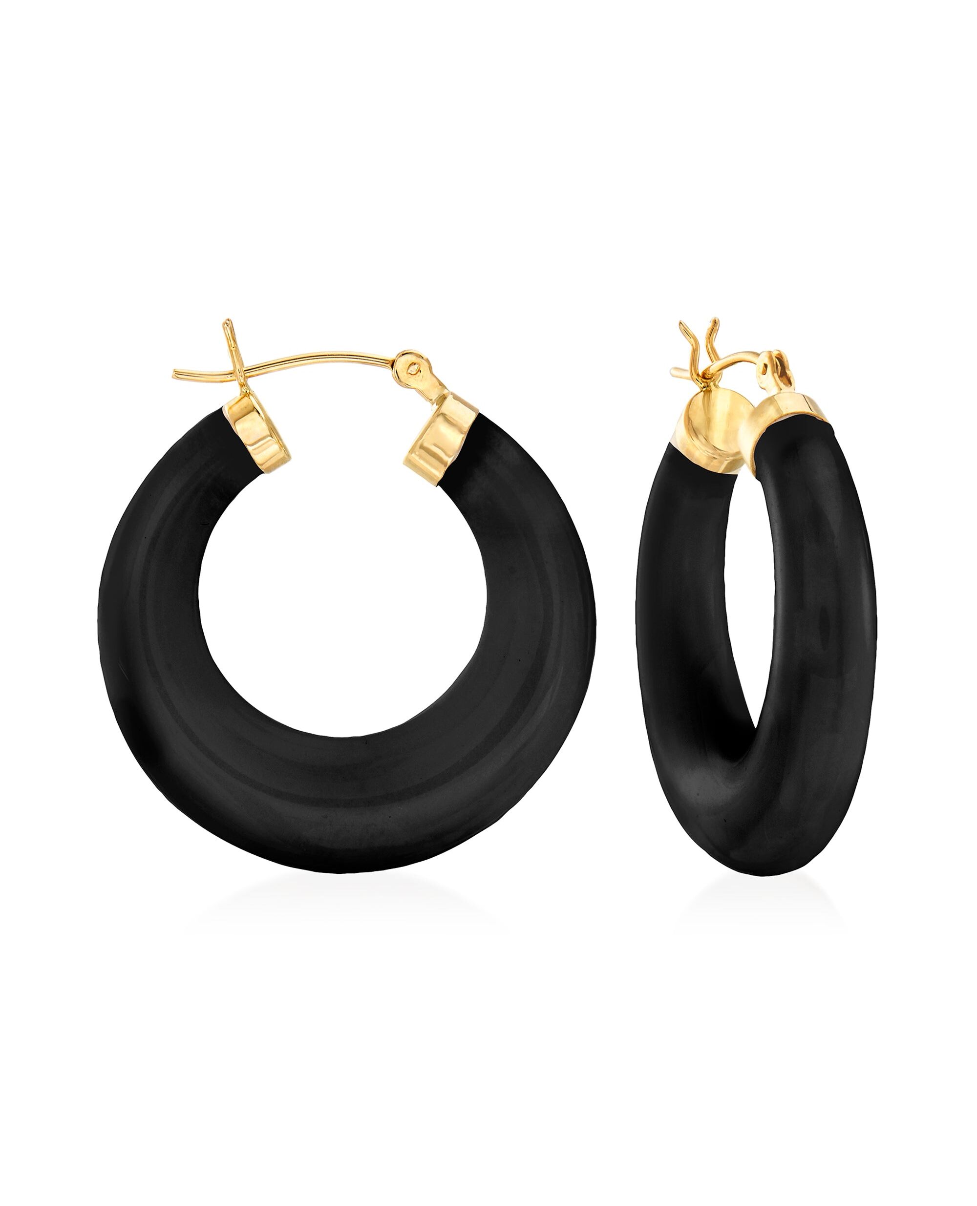 Ross-Simons Black Onyx Hoop Earrings in 14kt Yellow Gold