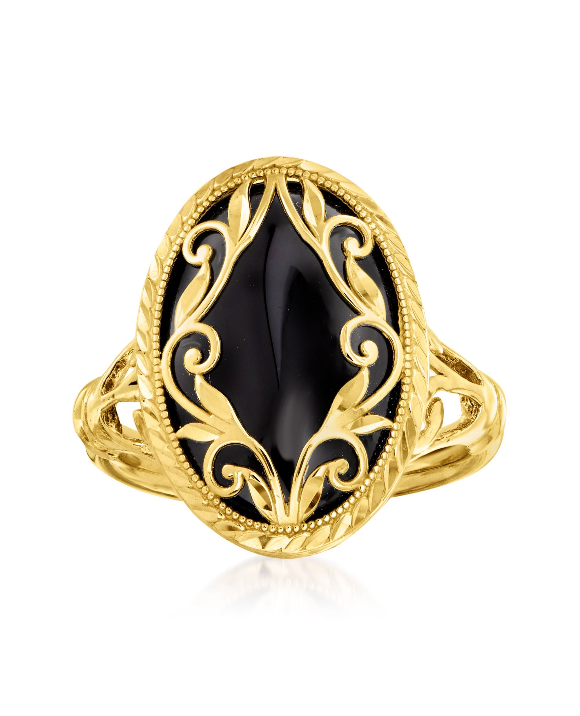 Ross-Simons Black Onyx Scroll Ring in 14kt Yellow Gold