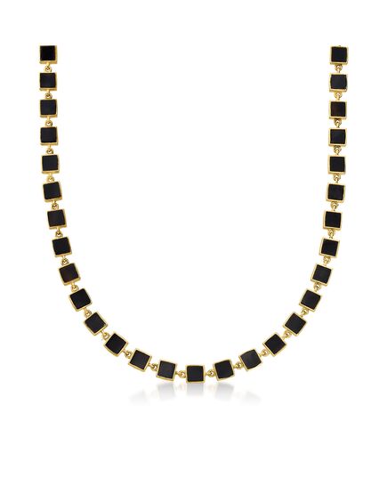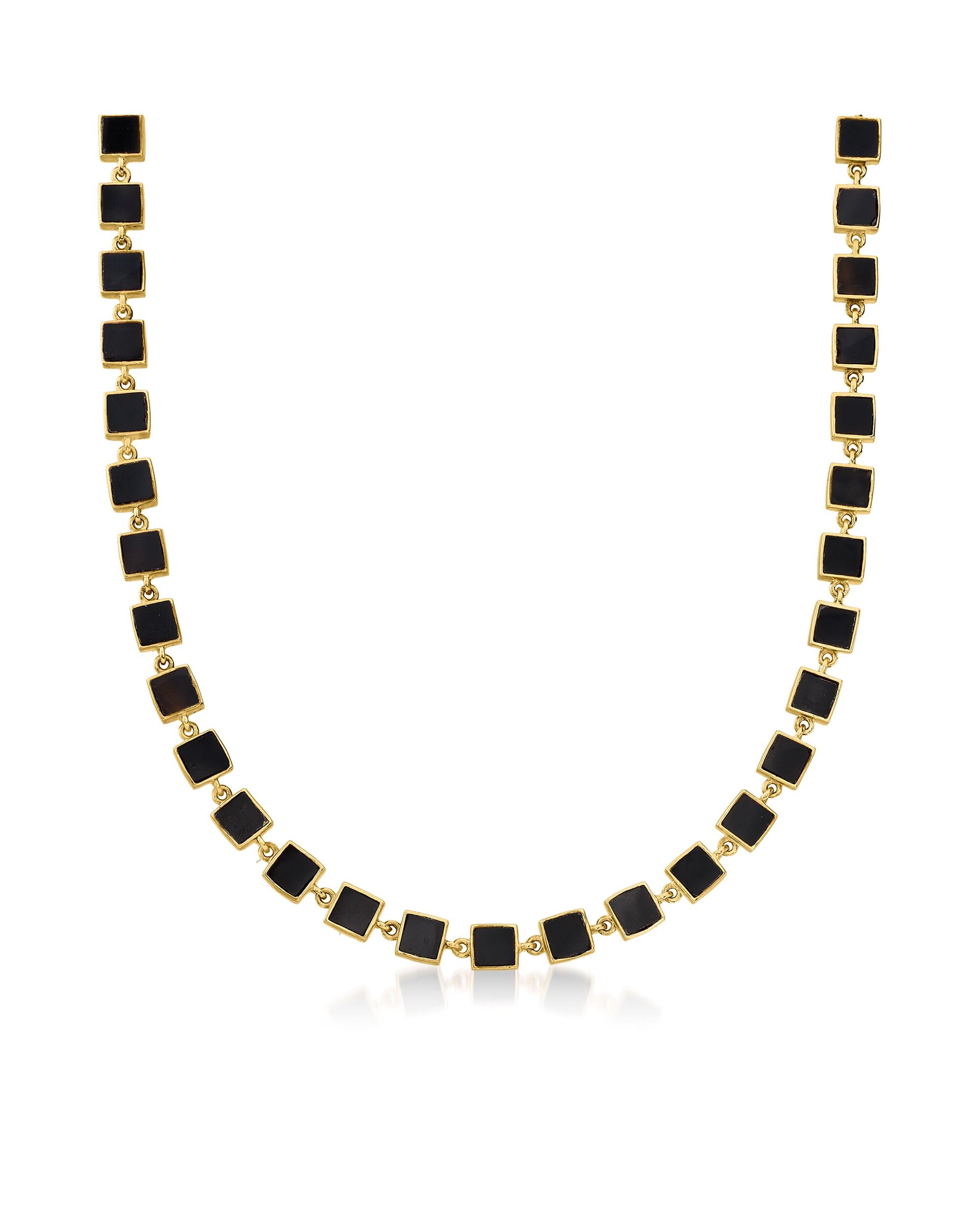 Ross-Simons Black Onyx Station Necklace in 18kt Yellow Gold Over Sterling Silver