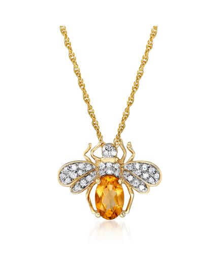 Ross-Simons Citrine and . Diamond Bee Pendant Necklace in 14kt Yellow Gold