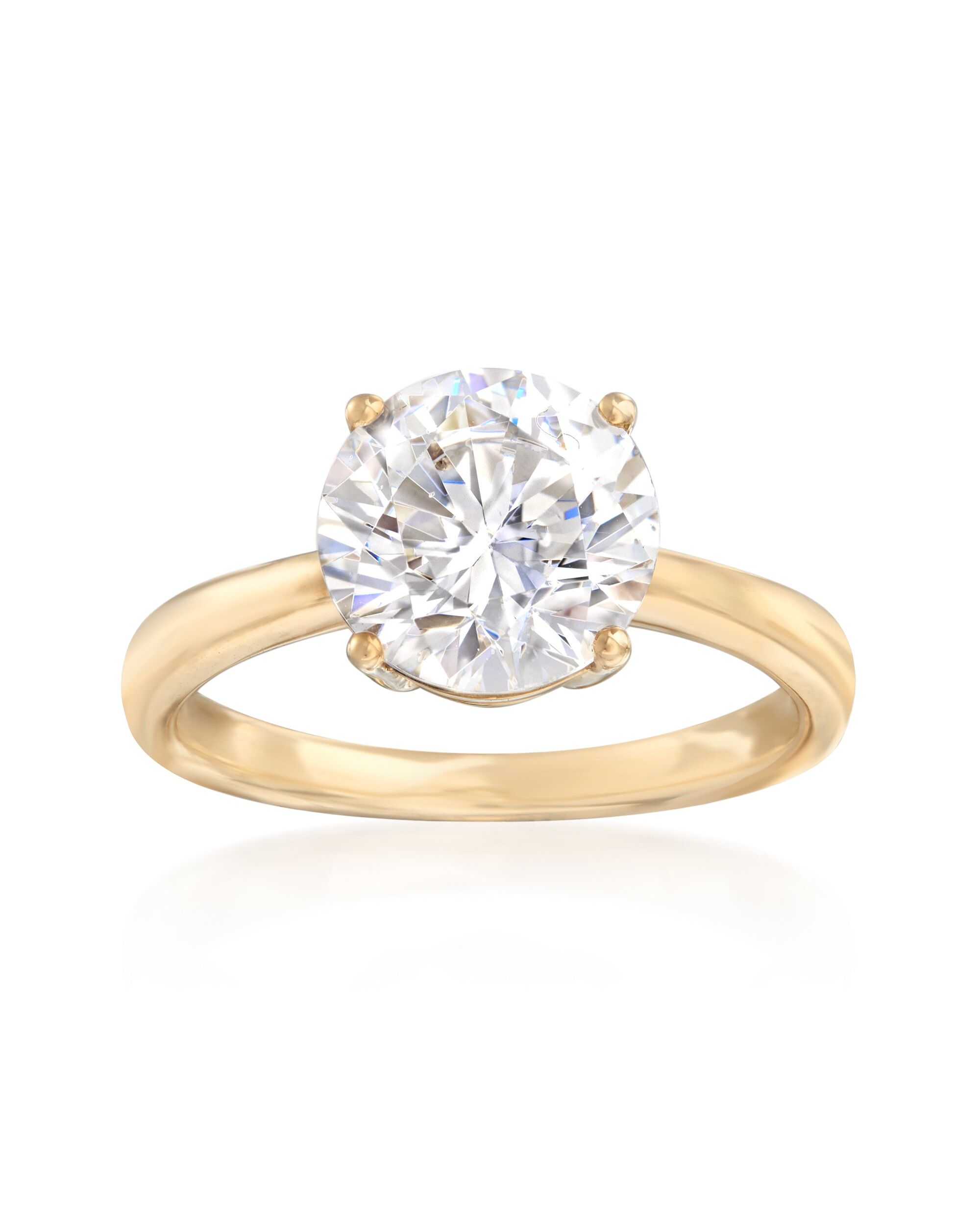 Ross-Simons is the authority on luxury classics. This solitaire ring is all about making an impression, with a single 3.00 carat round brilliant-cut CZ. Set in 14kt yellow gold ring. CZ solitaire ring. CZ weights are diamond equivalents. Each Ross-Simons item arrives in a fine jewelry presentation box. Shop Ross-Simons jewelry risk-free as all items include a 30-day, 100% money-back guarantee.Stone InformationGem Type 1 - Cubic-ZirconiaStone Cut 1 - Good-CutStone Color 1 - ClearStone Clarity 1 - ClearStone Shape 1 - Round-ShapeStone Creation Method 1 - SyntheticStone Treatment Method 1 - Not-TreatedStone Weight 1 - 3.00 CaratsNumber Of Stones 1 - 1