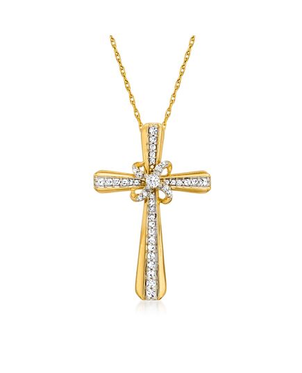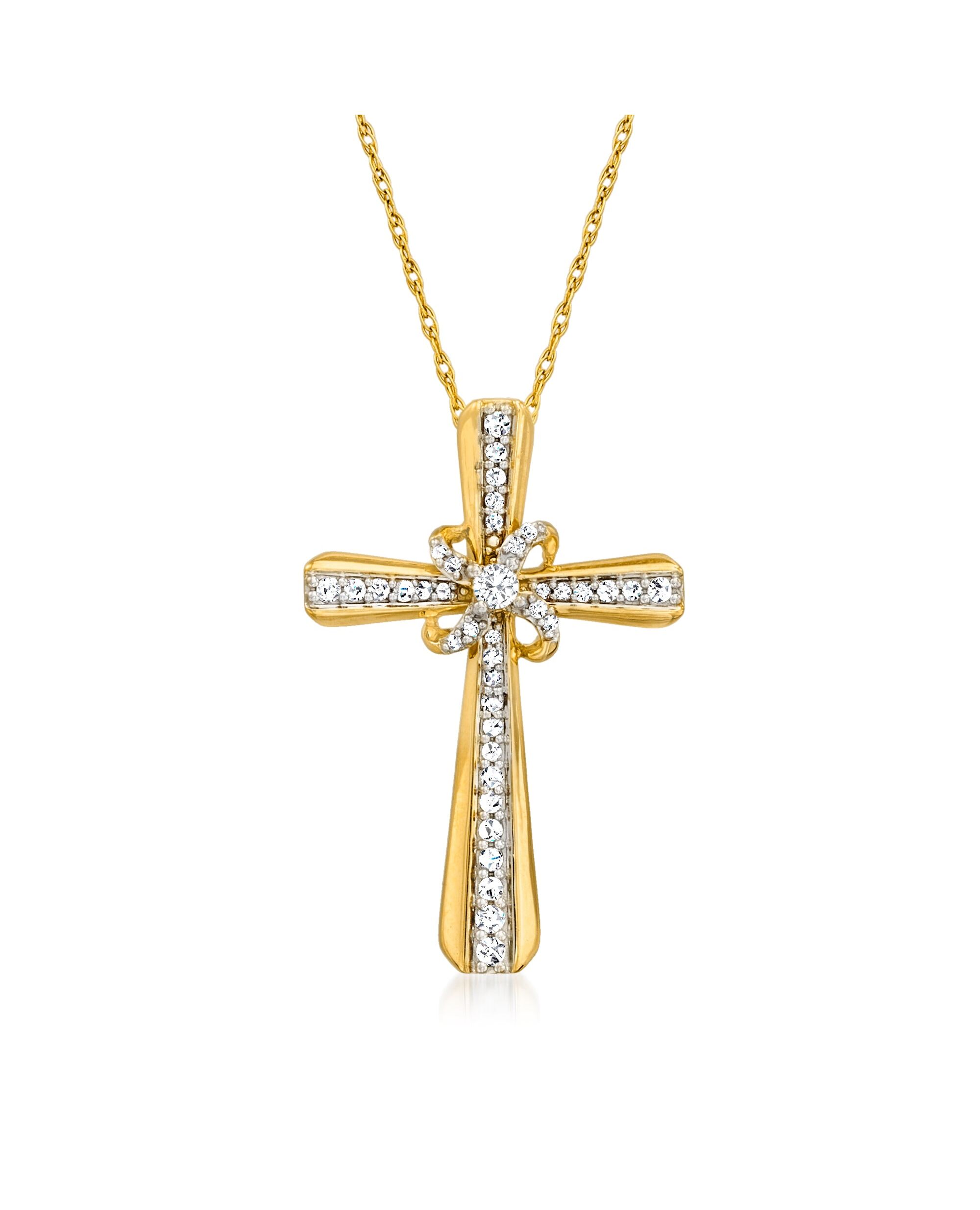 Ross-Simons Diamond Cross Pendant Necklace in 14kt Yellow Gold