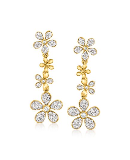 Ross-Simons Diamond Daisy Drop Earrings in 18kt Gold Over Sterling