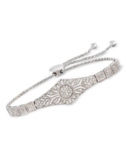 Ross-Simons Diamond Floral Openwork Bolo Bracelet in Sterling Silver