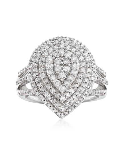 A top-rated jeweler since 1952, Ross-Simons travels the world to find high-quality styles at the best prices. This gorgeous ring is a must-have! 1.03 ct. t.w. diamonds rounds glisten in polished sterling silver with rhodium plating. 3/4" wide. Diamond graduated pear-shaped ring. Each Ross-Simons item arrives in a fine jewelry presentation box. Shop Ross-Simons jewelry risk-free as all items include a 30-day, 100% money-back guarantee.Stone InformationGem Type 1 - DiamondStone Cut 1 - Good-CutStone Color 1 - I-JStone Clarity 1 - I3Stone Shape 1 - Round-ShapeStone Creation Method 1 - NaturalStone Treatment Method 1 - Not-TreatedStone Weight 1 - 0.51 CaratsNumber Of Stones 1 - 81Gem Type 2 - DiamondStone Cut 2 - Good-CutStone Color 2 - I-JStone Clarity 2 - I3Stone Shape 2 - Round-ShapeStone Creation Method 2 - NaturalStone Treatment Method 2 - Not-TreatedStone Weight 2 - 0.49 CaratsNumber Of Stones 2 - 34