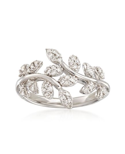 Established in 1952, Ross-Simons presents contemporary styles with a timeless appeal. Wreaths of laurel leaves have signified victory and accomplishment since ancient times. This one's masterful with 0.33 ct. t.w. diamonds arranged as a bypass ring. Set in polished sterling silver. 1/2" wide. Diamond leaf bypass ring. Each Ross-Simons item arrives in a fine jewelry presentation box. Shop Ross-Simons jewelry risk-free as all items include a 30-day, 100% money-back guarantee.Stone InformationGem Type 1 - DiamondStone Cut 1 - Good-CutStone Color 1 - I-JStone Clarity 1 - I3Stone Shape 1 - Round-ShapeStone Creation Method 1 - NaturalStone Treatment Method 1 - Not-TreatedStone Weight 1 - 0.33 CaratsNumber Of Stones 1 - 46