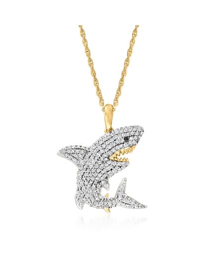 Ross-Simons Diamond Shark Pendant Necklace With Black Diamond Accent in 18kt Gold Over Sterling