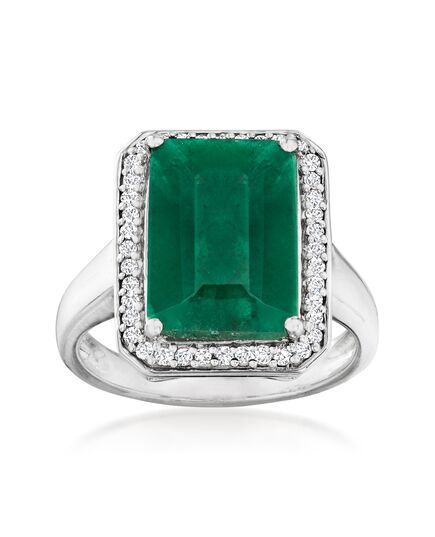 Ross-Simons Emerald and . Diamond Ring in Sterling Silver