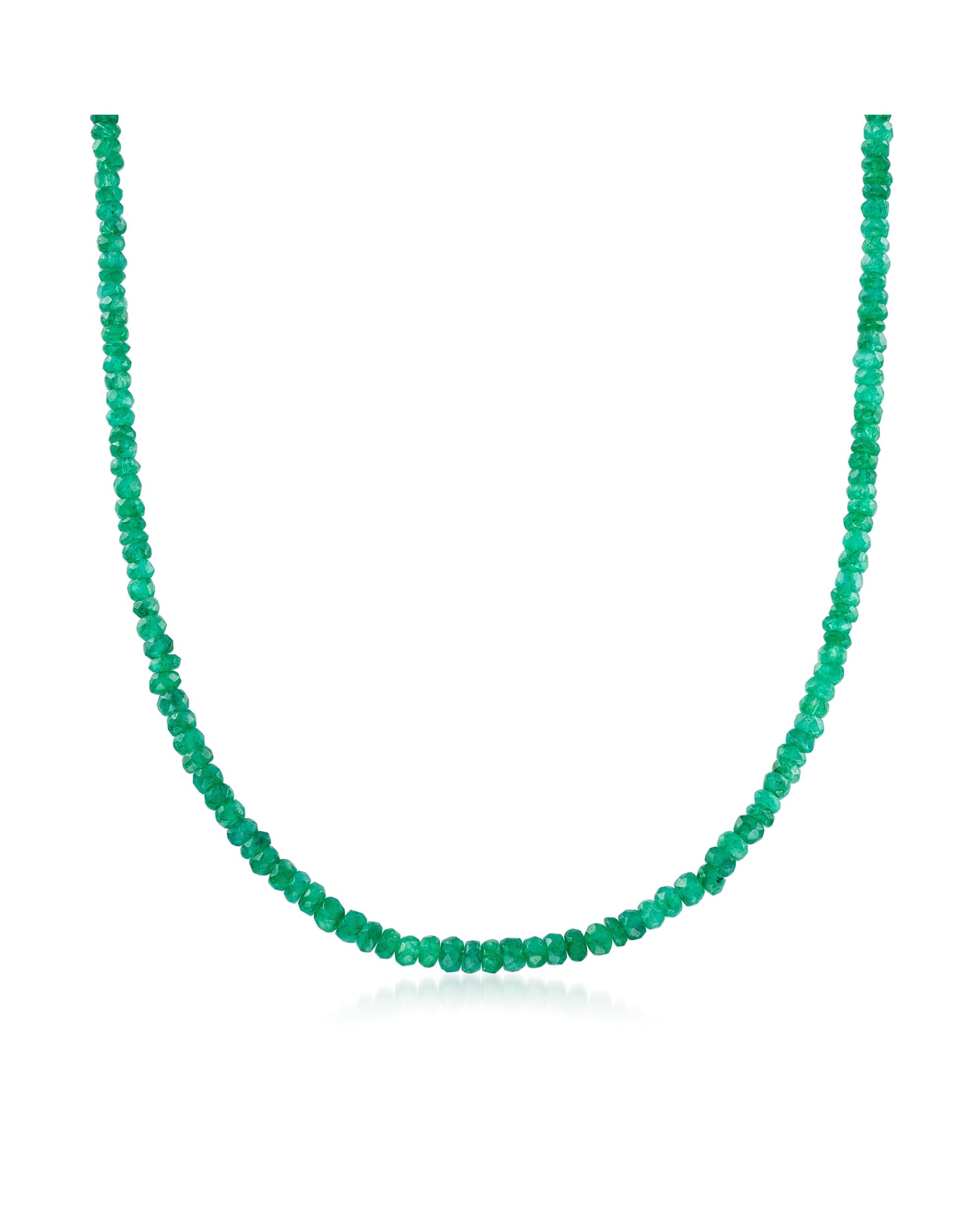 Ross-Simons Emerald Bead Necklace in 14kt Yellow Gold With Magnetic Clasp