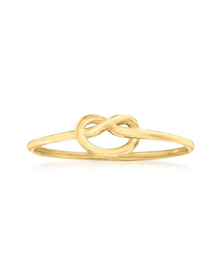 Ross-Simons presents contemporary styles with a timeless appeal. RS Pure. Simple, modern, pretty — and oh-so-fun to stack and layer, mix and match. From Italy, this dainty 14kt yellow gold ring offers a minimalistic take on the meaningful love knot design. 3/16" wide. 14kt yellow gold love knot ring. Each Ross-Simons item arrives in a fine jewelry presentation box. Shop Ross-Simons jewelry risk-free as all items include a 30-day, 100% money-back guarantee.