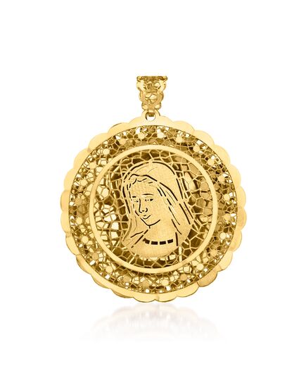Ross-Simons Italian 14kt Yellow Gold Mother Mary Filigree Medallion Pendant
