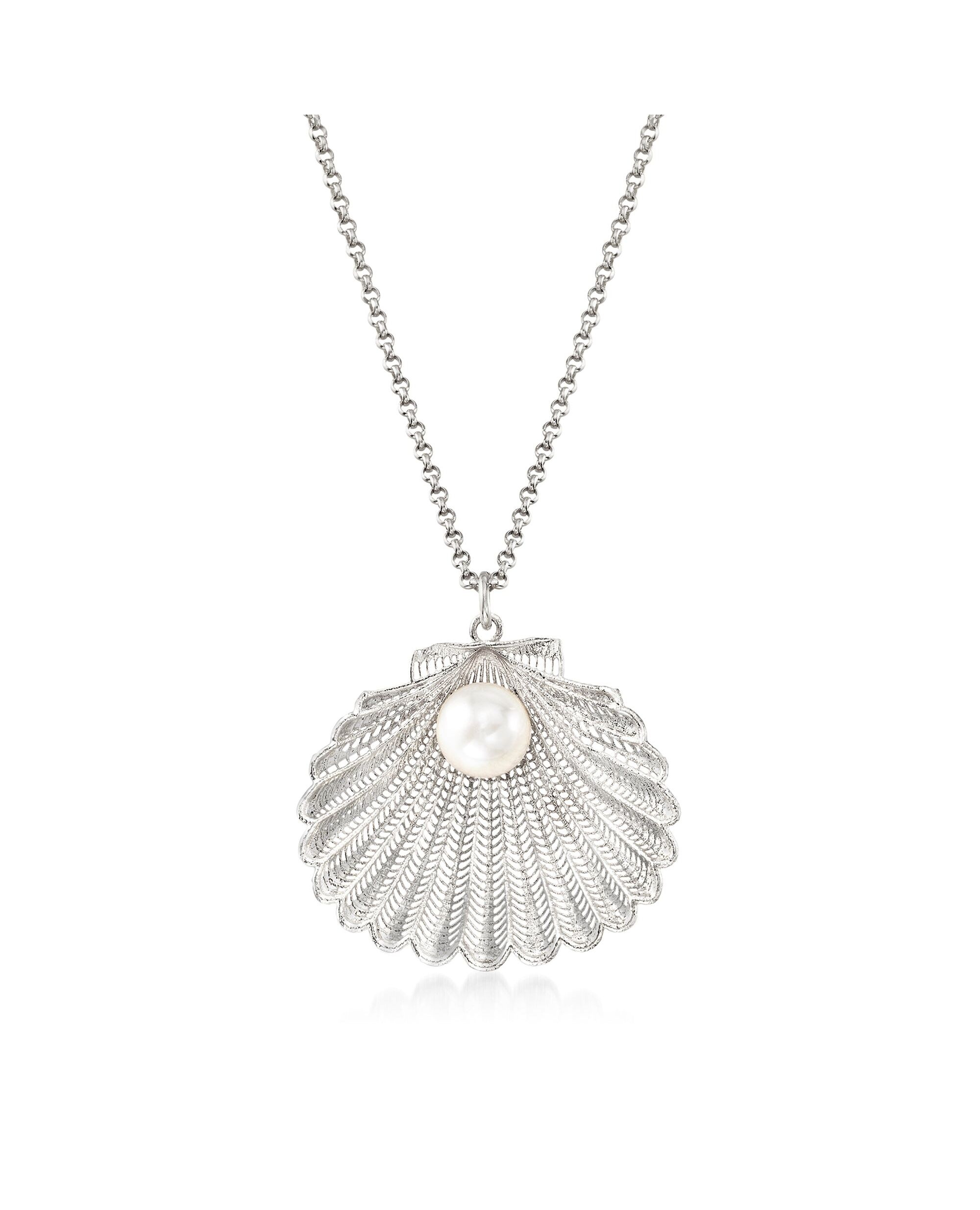 Ross-Simons Italian Cultured Pearl Seashell Pendant Necklace in Sterling Silver