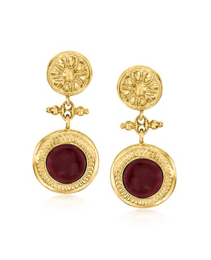 Ross-Simons Italian Garnet Floral Drop Earrings in 18kt Gold Over Sterling