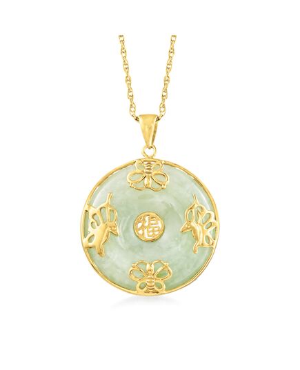 Ross-Simons Jade "Good Fortune" Butterfly Pendant Necklace in 18kt Gold Over Sterling