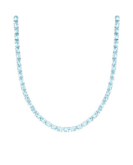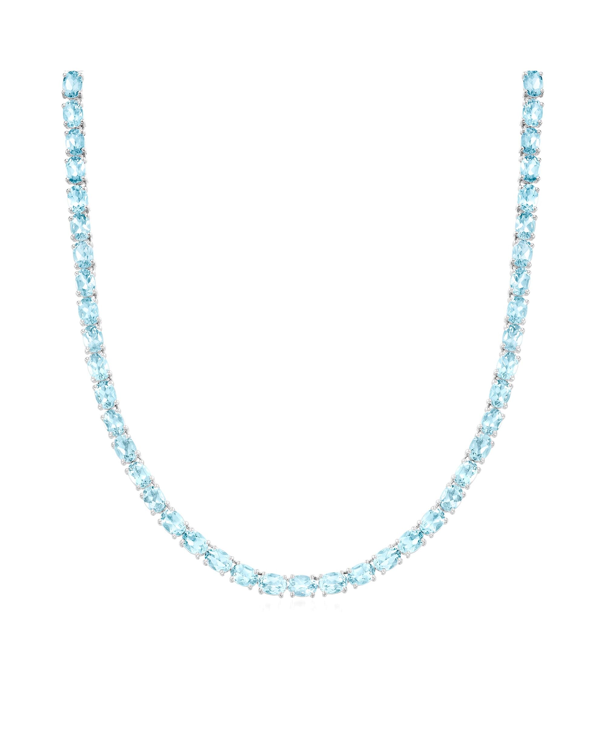 With a commitment to quality and affordability, Ross-Simons presents timeless jewelry for the modern woman. Embrace the sparkle of a timeless tennis necklace in a beautiful hue at a fantastic price. Here, 45.00 ct. t.w. oval sky blue topaz beams their heavenly shade in polished sterling silver. Figure 8 safety. Box clasp, sky blue topaz tennis necklace. Each Ross-Simons item arrives in a fine jewelry presentation box. Shop Ross-Simons jewelry risk-free as all items include a 30-day, 100% money-back guarantee.Stone InformationGem Type 1 - TopazStone Cut 1 - Good-CutStone Color 1 - BlueStone Clarity 1 - BlueStone Shape 1 - Oval-ShapeStone Creation Method 1 - NaturalStone Treatment Method 1 - Heat-Treated,IrradiatedStone Weight 1 - 45.00-50.00 CaratsNumber Of Stones 1 - 63-71