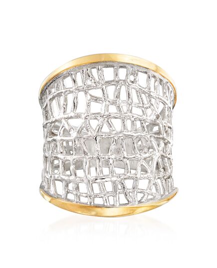 Ross-Simons Sterling Silver and 14kt Yellow Gold Free-Form Lattice Ring