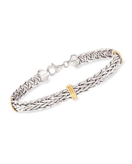 Ross-Simons Sterling Silver and 14kt Yellow Gold Wheat Bracelet