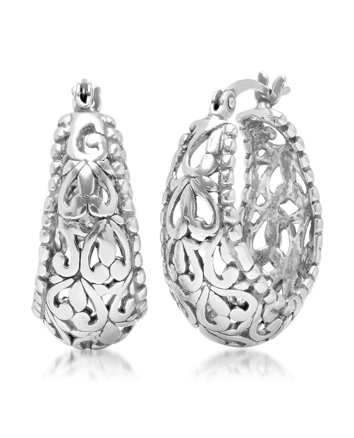 Sterling Silver Filigree Click-Top Oval Hoop Earrings (0.75 inches)