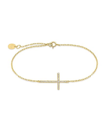 Sterling Silver Sideways CZ Cross Bracelet