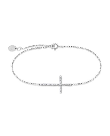 Sterling Silver Sideways CZ Cross Bracelet