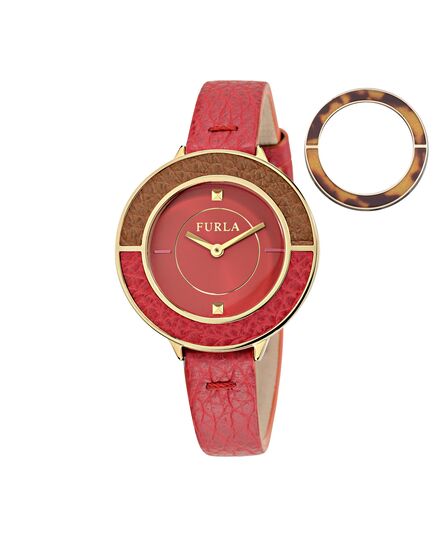 Furla Women's Club Red Dial Calfskin Leather Watch