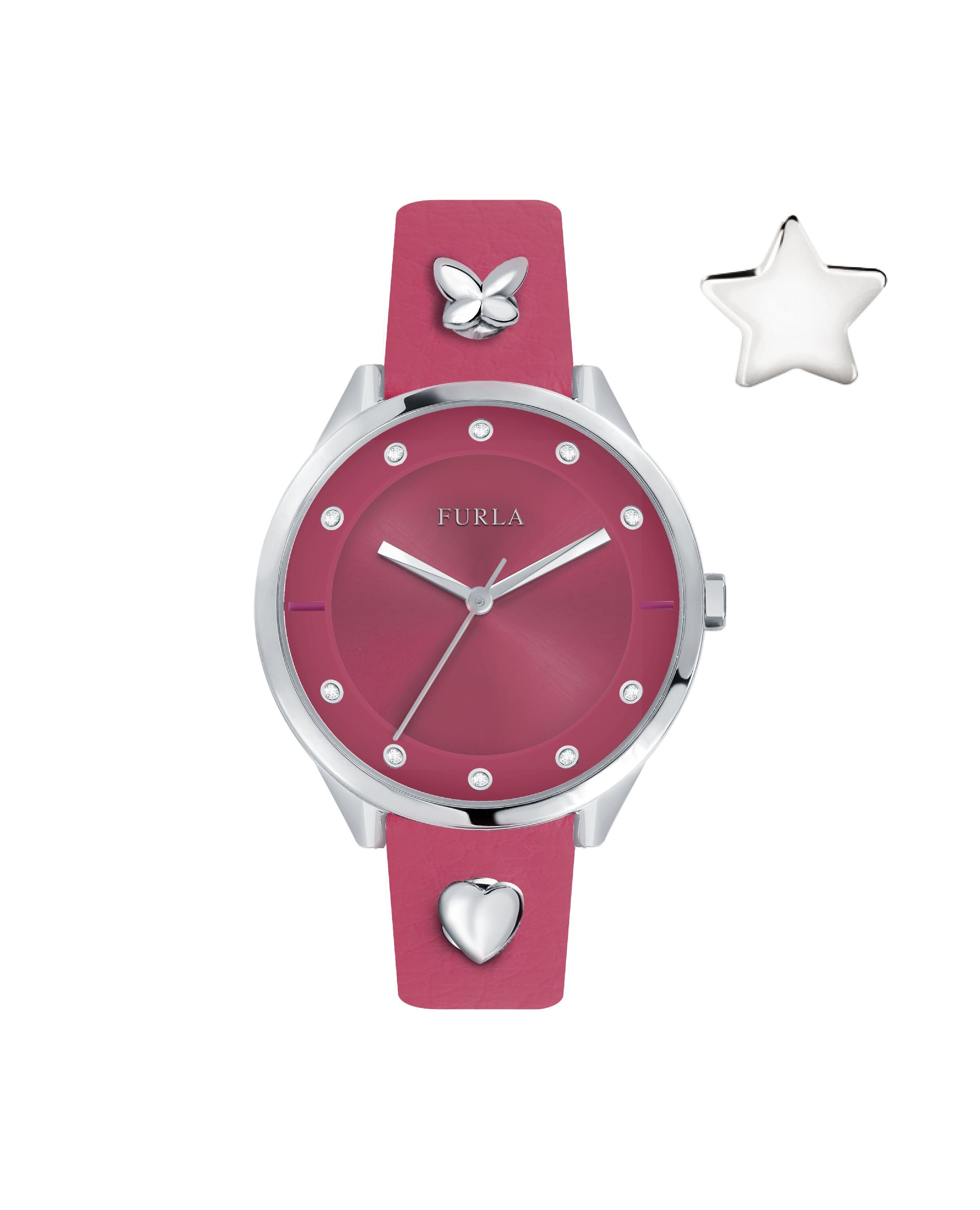 Furla Women's Pin Pink Dial Calfskin Leather Watch