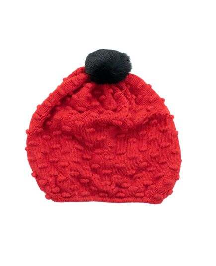 Stitched Hat With Rabbit Fur Pom