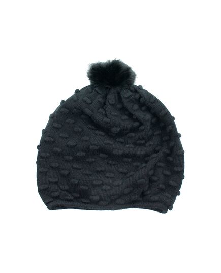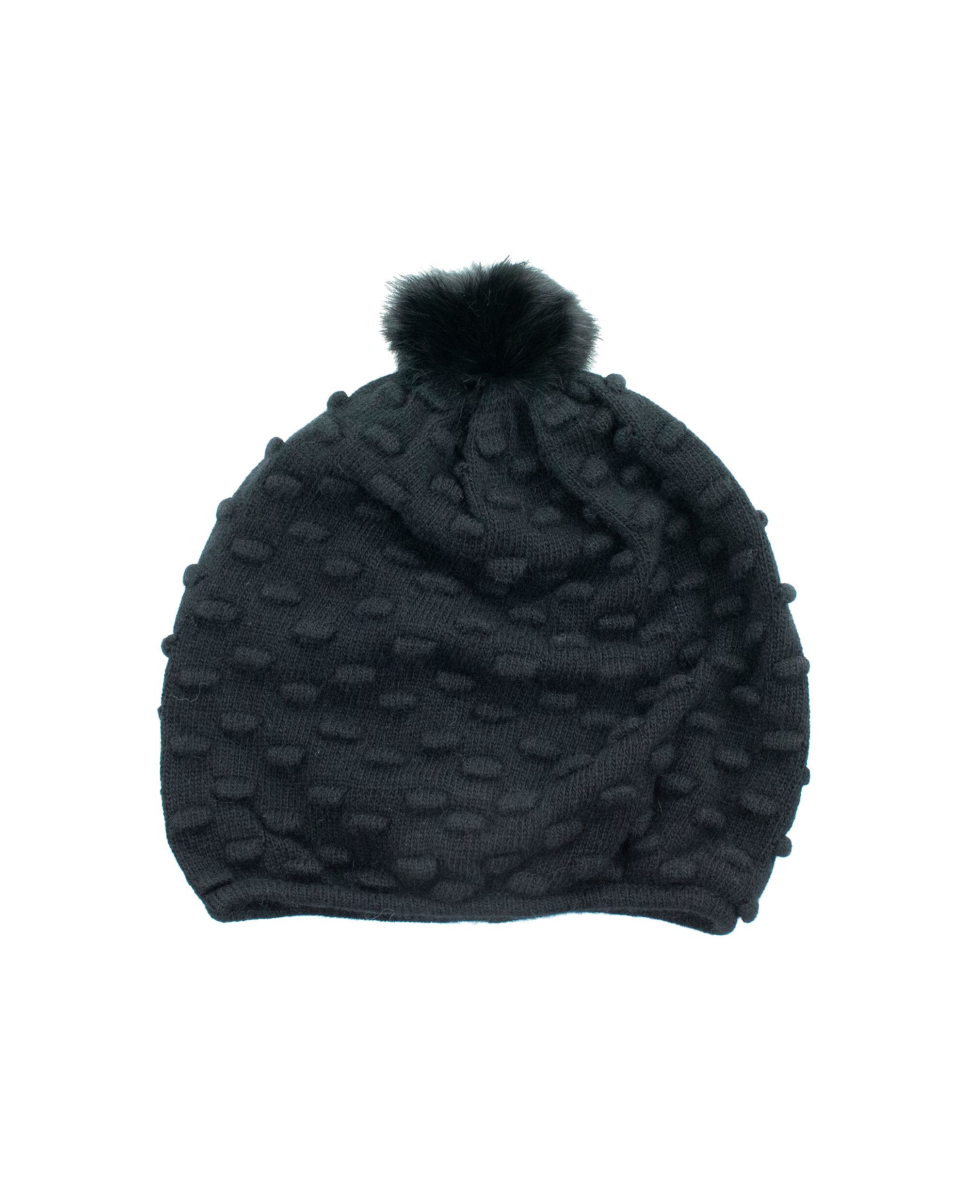 Stitched Hat With Rabbit Fur Pom