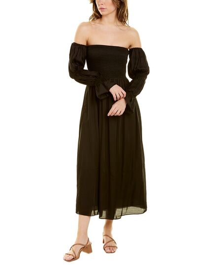 Color/Pattern - Black Approximately 46In From Shoulder To Hem Model Is 5'9.5 And Is Wearing A Size Small. Measurements May Vary Slightly By Size. Design Details - Off-The-Shoulder Sleeves, Smocked Detailing, And Dual Side Slip Pockets Slip-On Styling Shell - 100% Viscose Lining - 100% Cotton Hand Wash Imported