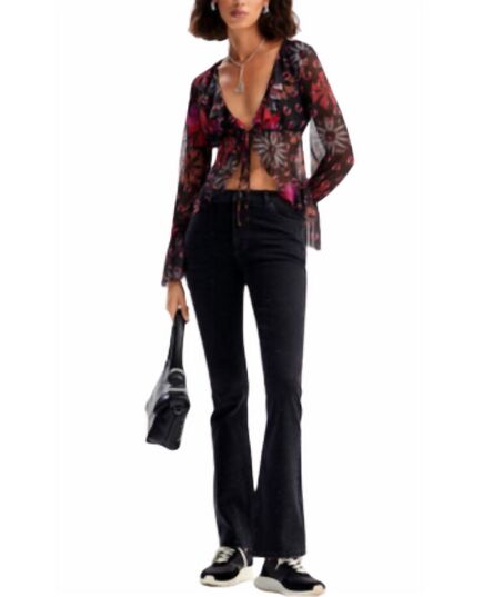A flattering silhouette that's suprisingly versatile.Desigual flare cut jean with all over applique rhinestones