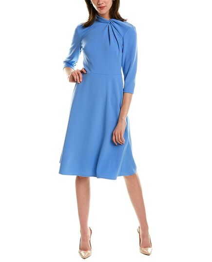 About The Brand - Accessible Looks For The Multifaceted Woman. Scuba Crepe Midi Dress In Blue Bonnet With Twisted Mock Neck And 3/4-Length Sleeves Approximately 43In From Shoulder To Hem Model Is 5'9.5 And Is Wearing A Size 4. Measurements May Vary Slightly By Size. Center Back Zipper 96% Polyester, 4% Spandex Machine Wash Imported