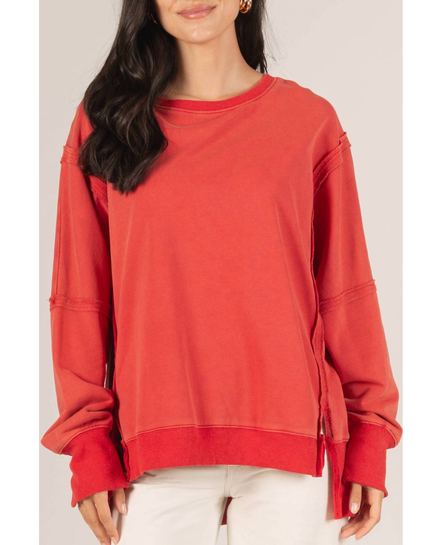 French Terry Long Sleeve Top In Red