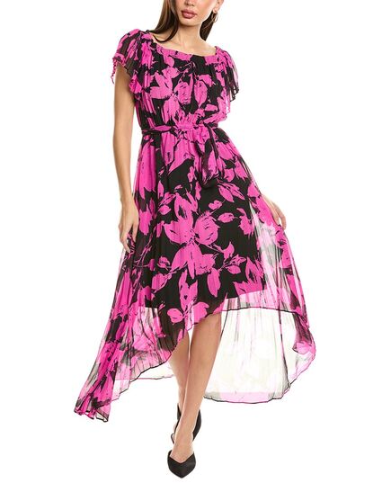 Introducing the stunning 'Joseph Ribkoff Off-The-Shoulder Midi Dress' in an elegant black and pink color pattern. This dress is approximately 42-55 inches from shoulder to hem and features a chic accordion pleated design, elasticized waist, and a trendy high-low hem. The dress is made of 100% polyester shell and lined with 90% polyester and 10% spandex for added comfort. The slip-on styling makes it easy to wear, and it can be hand washed for convenience. Perfect for a special night out or a formal event, this dress is sure to turn heads. Imported from the renowned brand Joseph Ribkoff, this dress is a must-have addition to any fashion-forward woman's wardrobe.