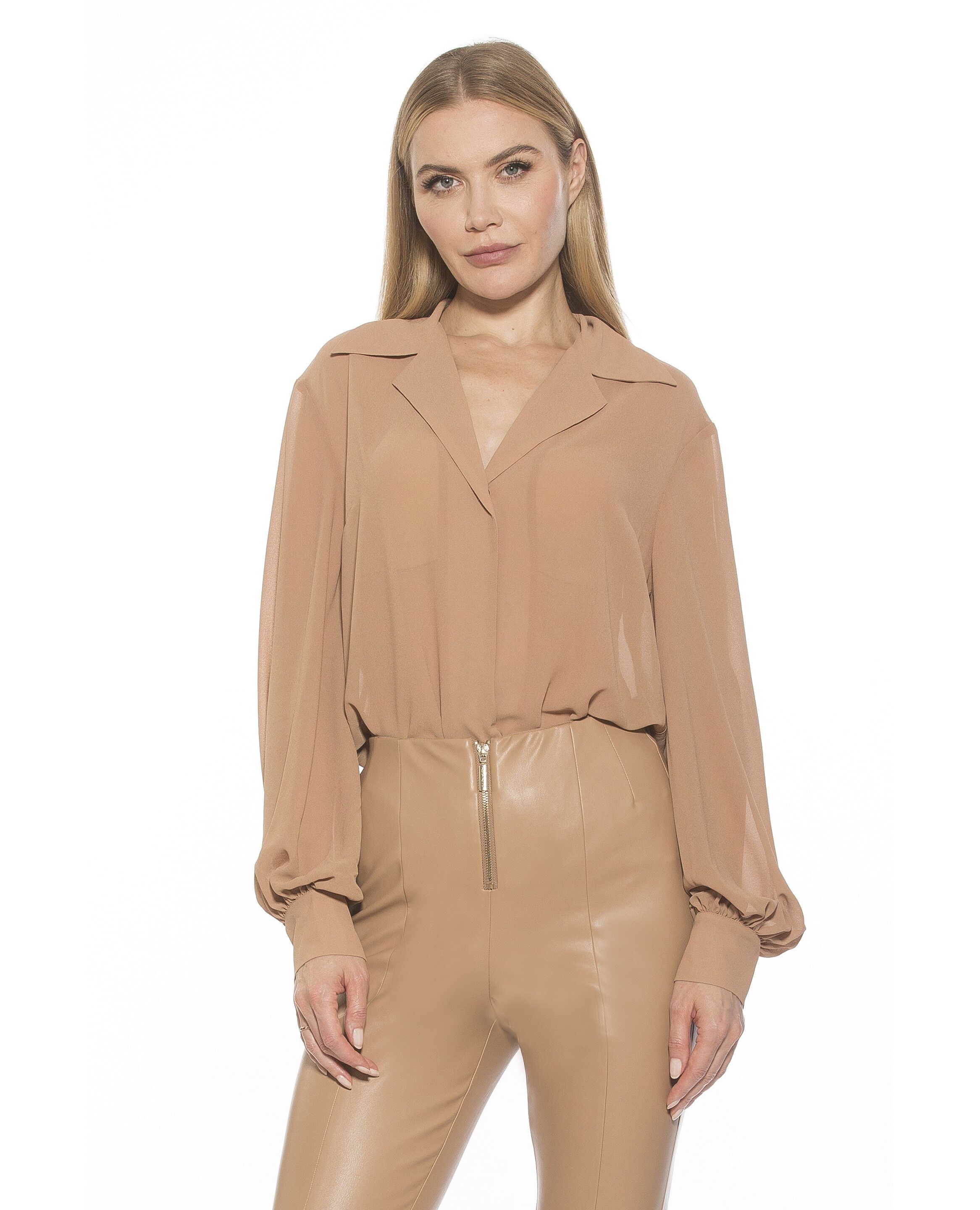 The Mila silky collared blouse from Alexia Admor is a must-have piece for your wardrobe. PRODUCT FEATURES Blouson Sleeve Collared Blouse 100% Polyester Machine Wash Imported Style T565
