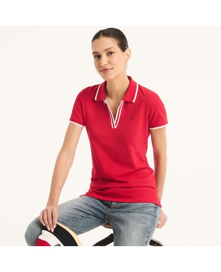 Nautica Womens Sustainably Crafted Ocean Split-Neck Polo