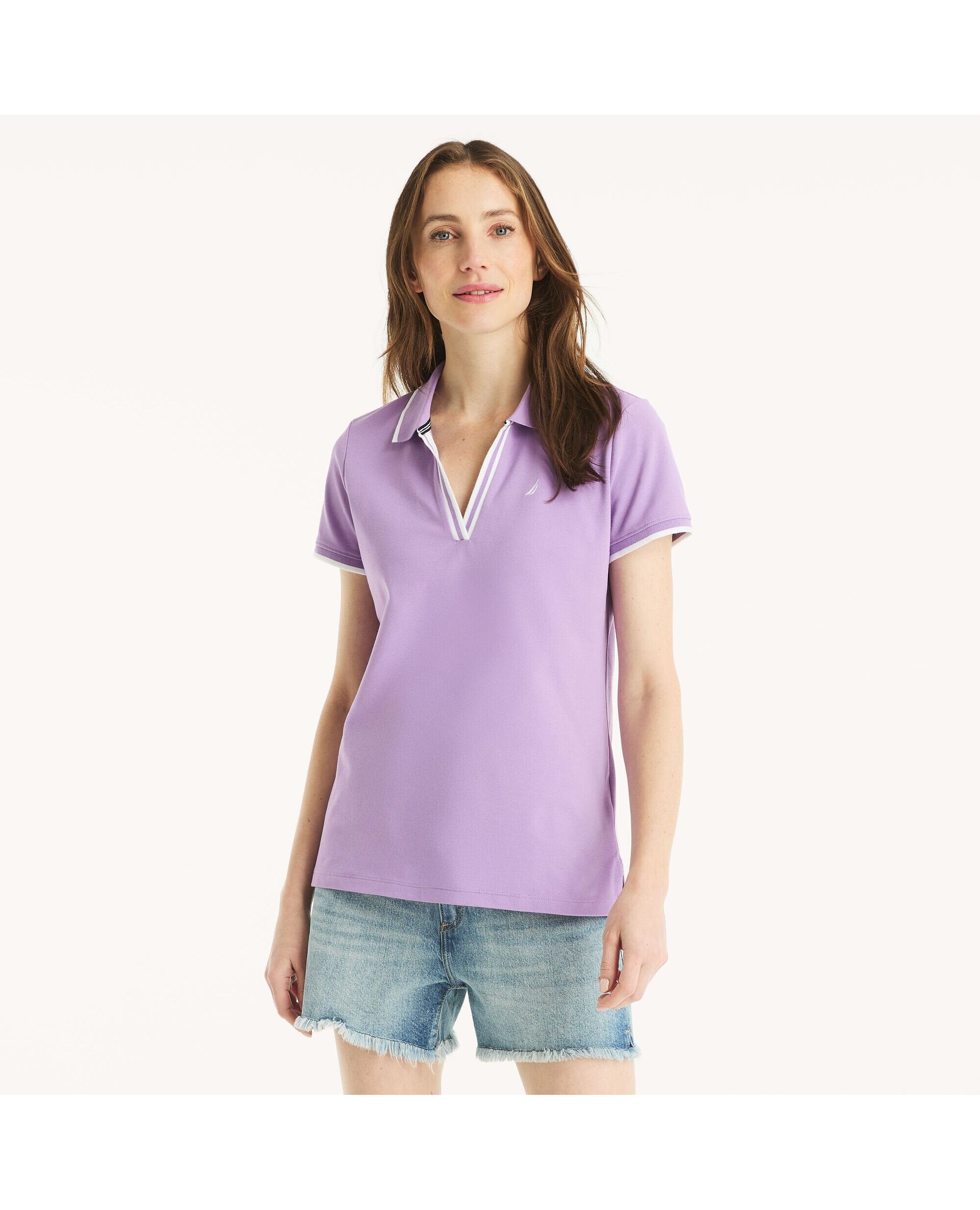 Nautica Womens Sustainably Crafted Ocean Split-Neck Polo