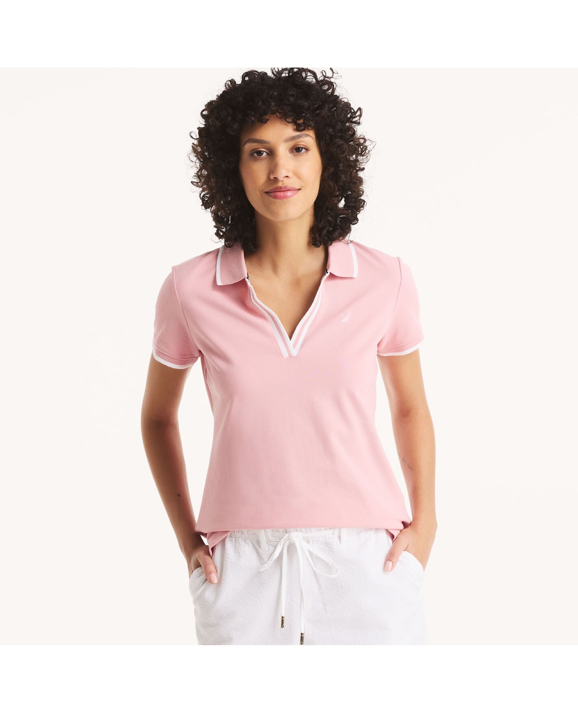 Nautica Womens Sustainably Crafted Ocean Split-Neck Polo