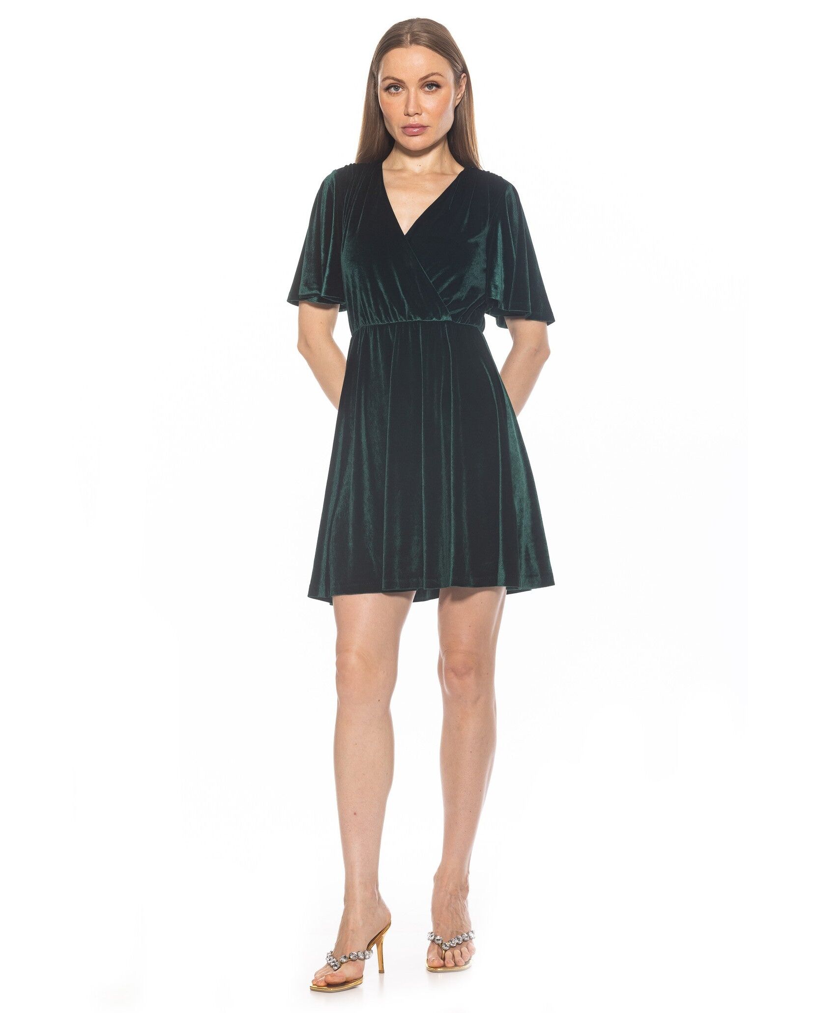 Indulge in luxury with our Oakless Dress. Made with soft velvet material, this mini dress features a flattering fit and flare silhouette and a sensual V-neck. The short flutter sleeves add a touch of elegance, while the keyhole on the back adds an alluring detail. Embrace sophistication and style with our Oakless Dress. Keyhole on the back Short Flutter Sleeve V-Neck Velvet Material Fit and Flare Mini Dress OAKLESS FLUTTER SLV VELVET FIT AND FLARE DRESS Imported D3795A